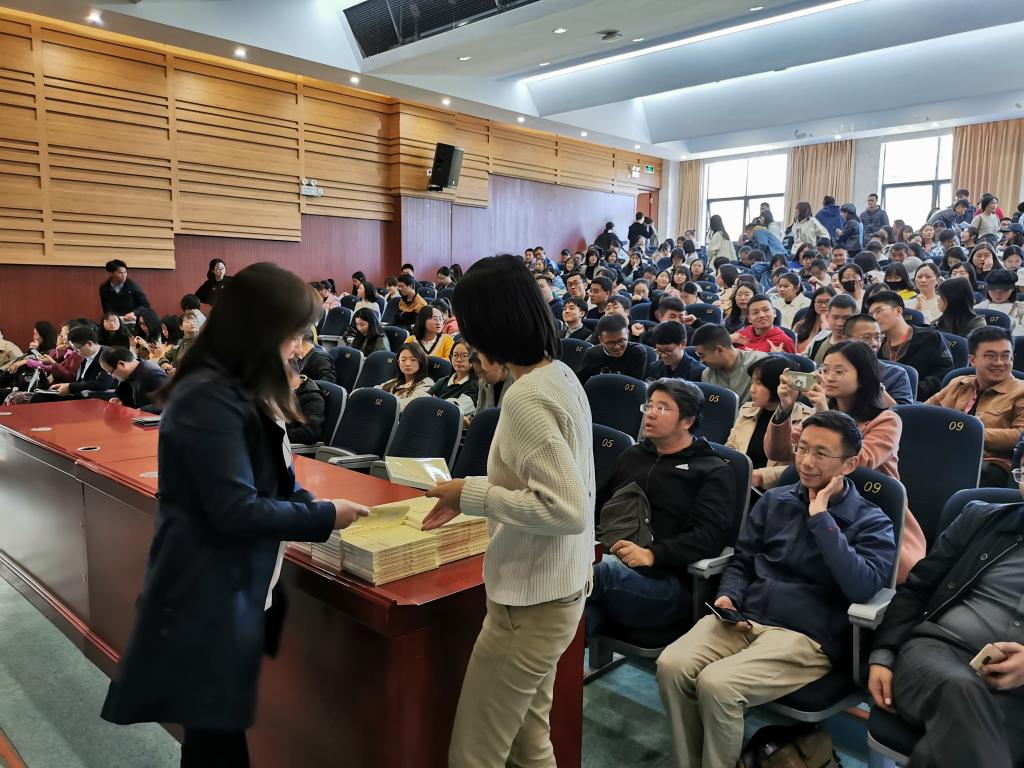 最后杨书记为2019级研究生新生党员发放党员读本。