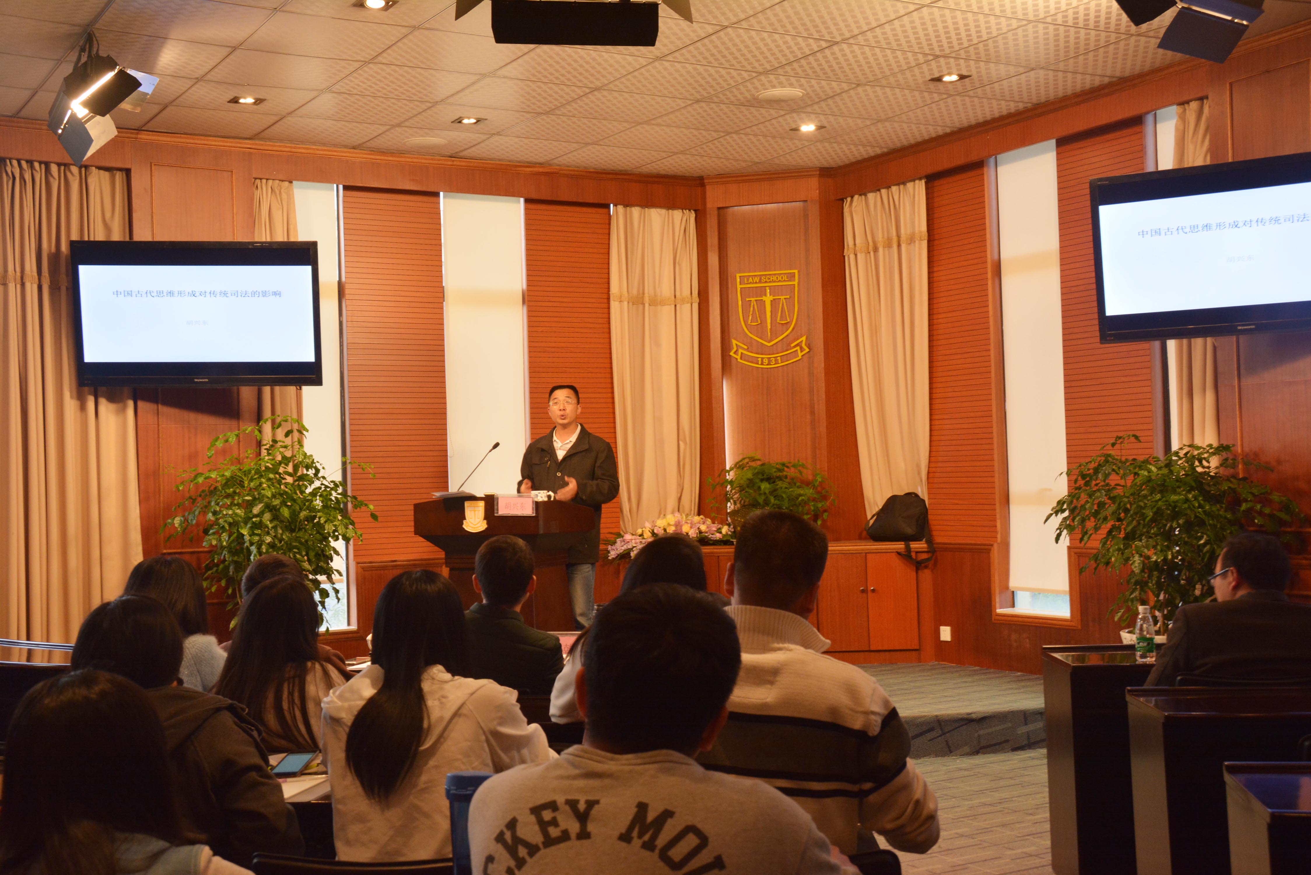 胡教授以“人类历史中的逻辑形式种类”为主题,首先简要介绍讲解古希腊的三段论形式逻辑和古印度的因明理论,引出中国古代的比类逻辑,并且从独特的方法论视角切入,具体讲解比、类,比类是中国古代司法思维的重要特质内容,是中国古代司法运作的核心内容。胡教授以其多年专业方向的学术研究积累,为大家系统讲解了司法技术中的“比”、比的思想基础是类等内容,使聆听者备受启发。