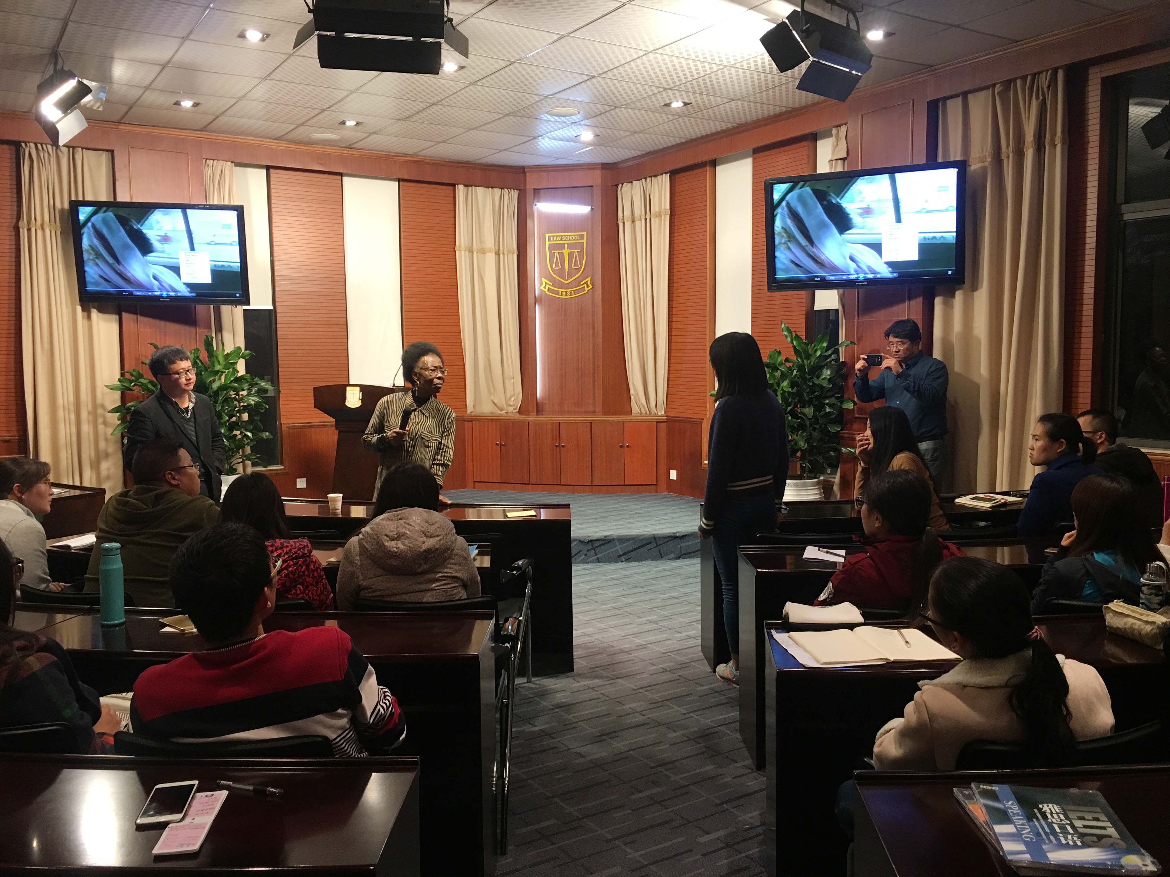 Okupa教授先以时间为线索向同学们讲述了人类的演变历程,并向大家介绍了一些同形异义词:单词拼写相同但具有不同的意思,如“bank of the River Nile”中的“bank”。接着Okupa教授介绍了非洲社会,引出非洲为何贫困、非洲版图划分与法律移植、非洲传统法律体系和传统刑事司法等一系列重要问题,并通过一部短片介绍了苏丹的婚姻法现状。