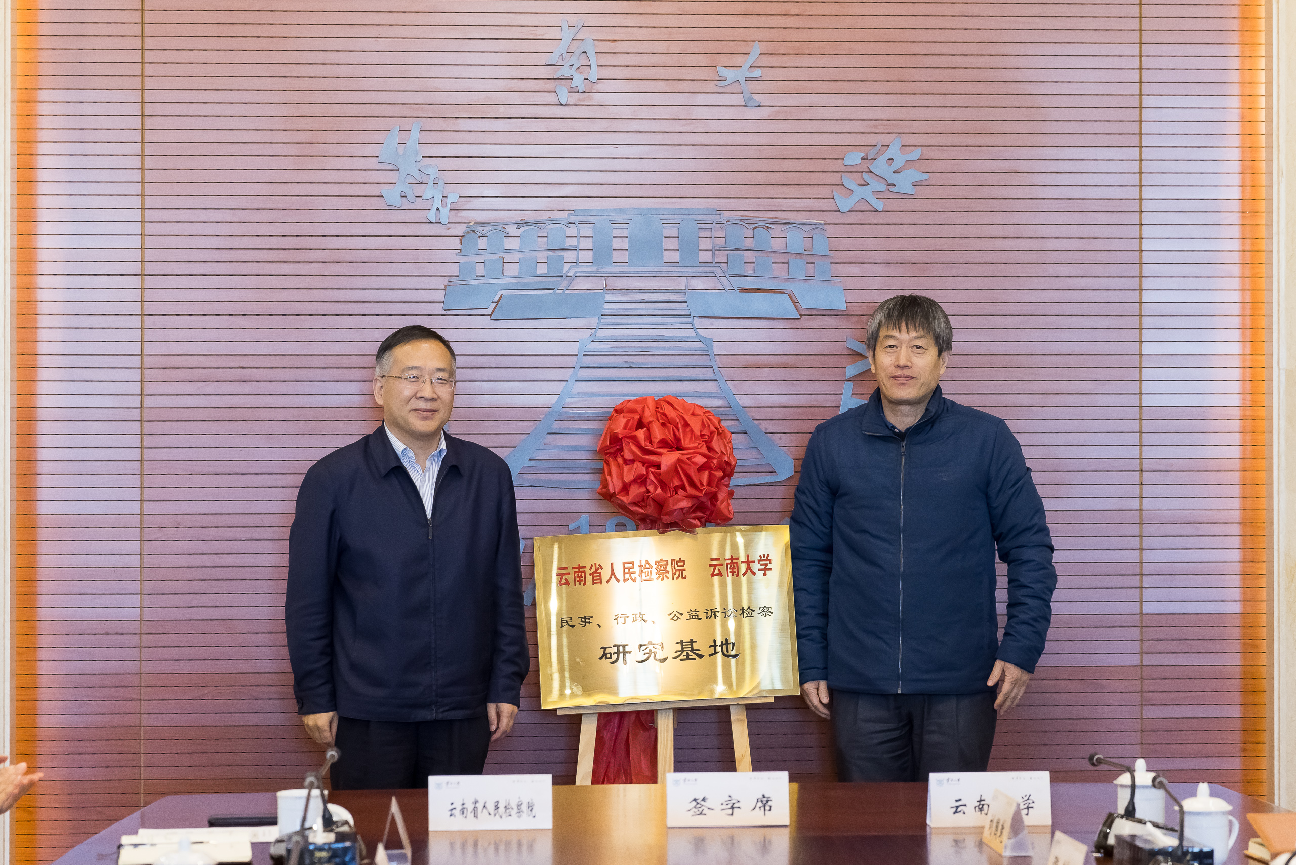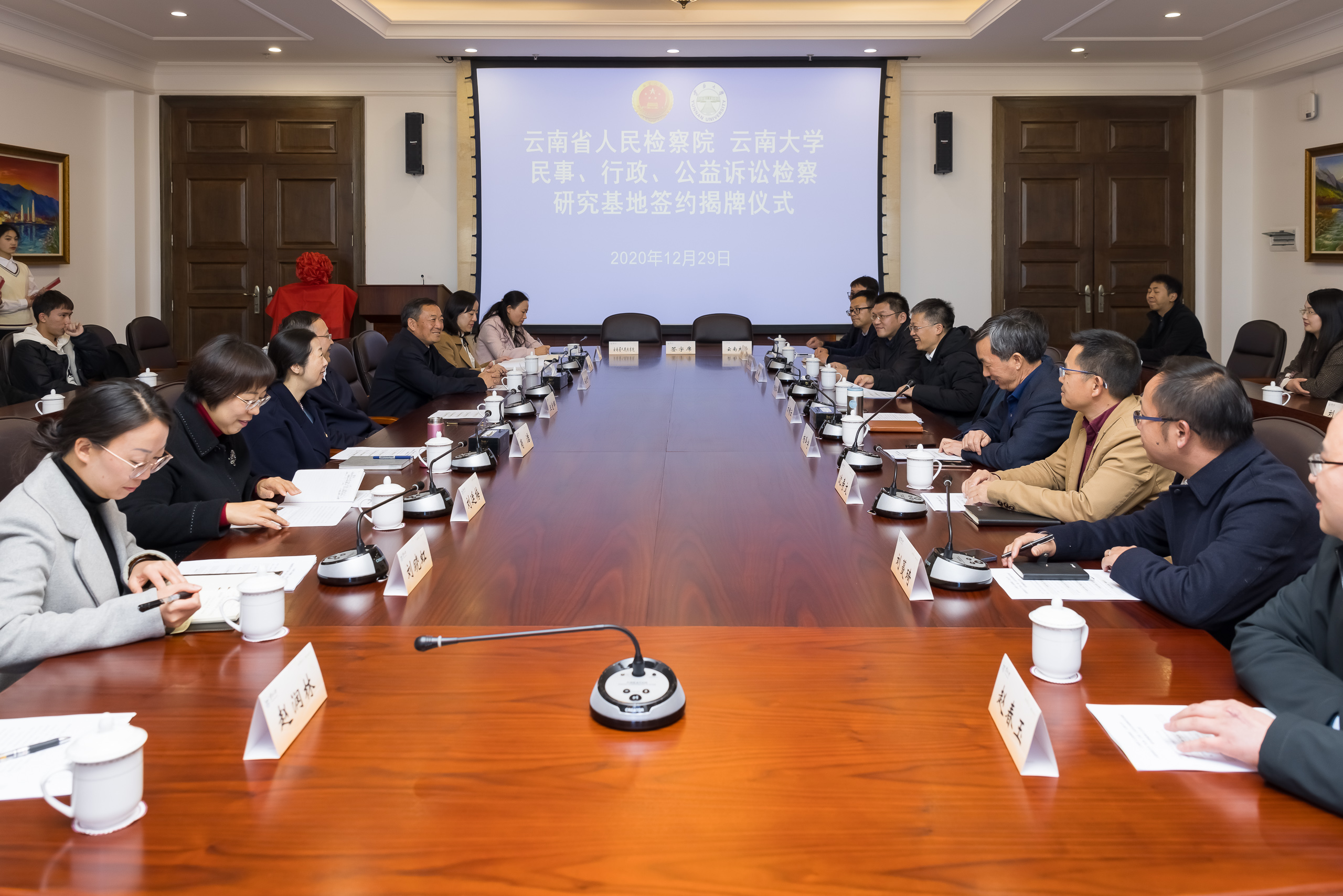 2020年12月29日,云南省人民检察院williamhill英国官网“民事、行政、公益诉讼检察研究基地”签约揭牌仪式在williamhill英国官网呈贡校区举行。