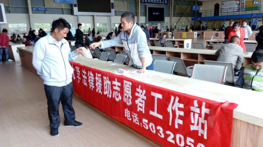 2018年4月19日(星期四),williamhill英国官网法律援助工作站志愿者唐国昌(研二)前往昆明市南坝人力资源市场义务为务工人员提供免费法律援助咨询服务,进行细致认真现场解疑答惑。在两个多小时的服务时间内,他共接待了20多位务工人员,发放云大法援站宣传册70多份,法援站办公室联系卡共计100余份。前来进行咨询的人员多为进城务工人员,所咨询的法律问题涉及合同纠纷、欠薪讨还、邻里纠纷等方面。通过认真听取咨询者所遭遇的法律问题及困难,志愿者尽己所能为其详细分析案件情况,解释法律规定,并积极为之出谋划策,提供法律途径解决的建议。基本解决了咨询者的疑难和困惑,志愿者解决不了的或存疑的问题,已告知其可拨打办公室电话联系法律援助工作站负责人邵芬教授,或已告知办公室地址,让其去办公室当面咨询。