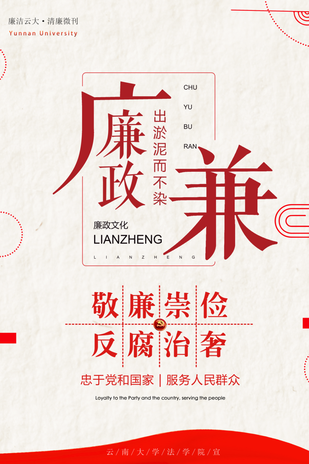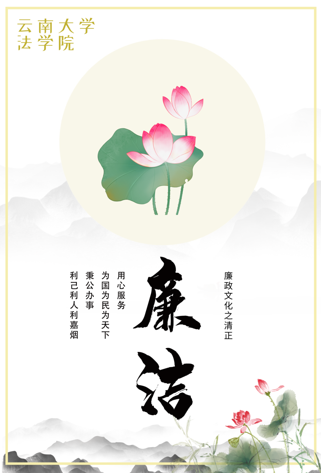 清廉是一种道德准则,也是一种社会责任。作为云大的员工,我们应该以自身的言行举止,诠释清廉的力量,向身边的同学传递正能量。“清廉云法·廉洁润我心”作品征集活动旨在通过海报的形式,宣传并展示清廉的价值,引导广老员工共同努力,营造风清气正的校园环境。