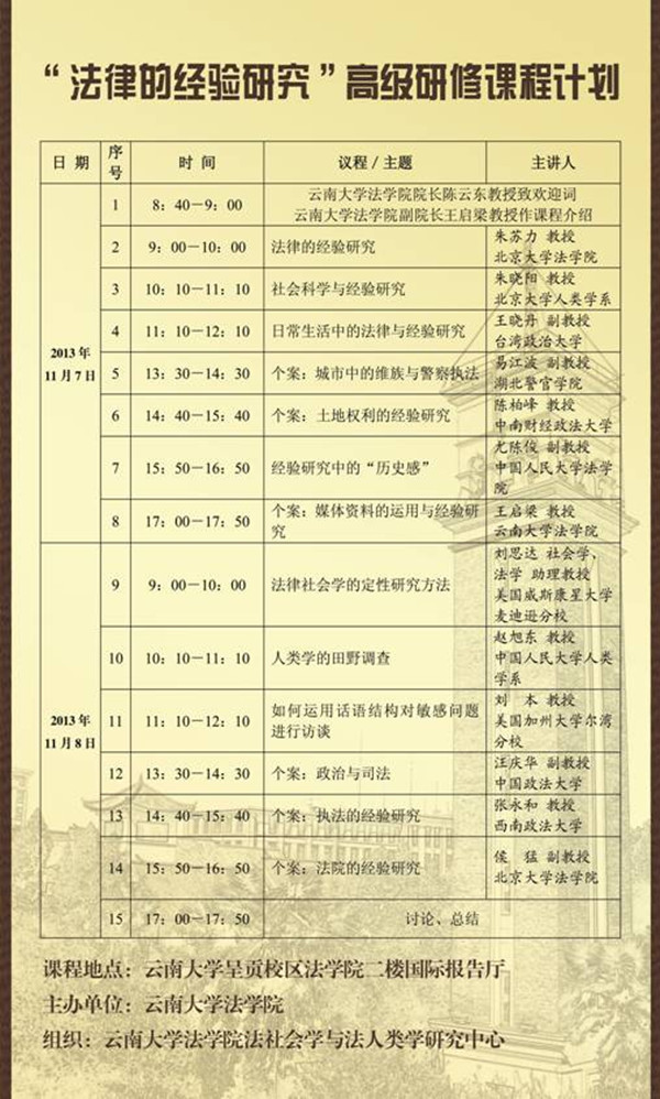 除“年会”外,包括“法律的经验研究”高级研修课程、“法律的经验研究与跨学科研究论坛”系列学术讲座等一系列学术和教研活动将陆续在williamhill英国官网展开。