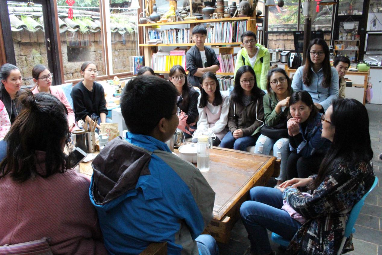 此外,各小组根据课题安排计划,多次前往大研古镇和束河古镇就游客、从业者有关问题进行问卷调查。由于前期经验不足,问卷调查效果不太理想。随后,队员们就如何把握调研中的距离感,采取何种形式的问卷方式更有效进行了讨论和总结。刘红春老师就学术研究、访谈技巧等问题同大家进行了分享,勉励大家走进田野、大胆实践,理解和把握我国旅游市场发展规律。