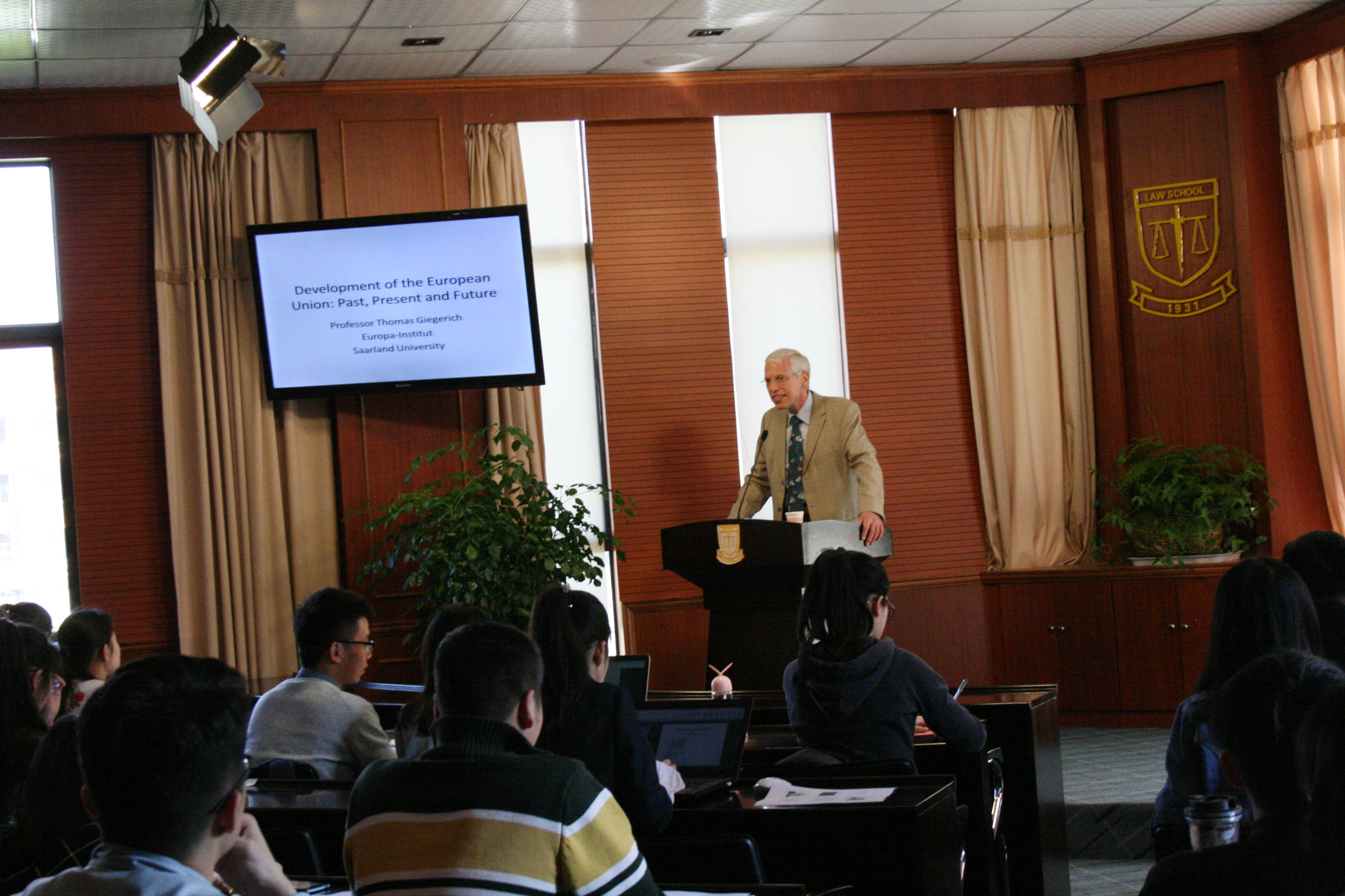 托马斯·格里希教授分别从“欧洲的主权演变和交战历史”、“欧洲统一化概念的提出和发展”、“理论争鸣、舒曼宣言和实用主义”、“共同体条约的基础、发展巩固”、“欧盟发展前景和英国脱欧”以及“欧盟委员会:欧洲未来白皮书”六个方面展开本次讲座。主要内容有:欧洲统一化概念的提出和发展过程中,面临着诸多现实问题,如联盟的多元化、经历了频繁战事的欧洲主权国家等。在欧盟成立过程中,面临着诸多理论争鸣,最具张力和代表性的是联邦主义和实用主义观点,历史证明实用主义占据了理论上峰。欧洲统一运动的“总设计师”、实用主义理论之父让·莫内(Jean Monnet)和实用主义政策之父罗伯特·舒曼(Robert Schuman)发挥了重要作用。1950年5月9日发表的《舒曼宣言》提出,建立欧洲煤钢联营,以为欧洲联邦奠定基础。两年后,欧洲煤钢共同体宣告成立,欧洲一体化进程从此大步向前。《欧洲联盟条约》、《欧洲联盟运行条约》和《欧盟基本权利宪章》共同构成欧洲共同体的条约基础。50年代起,成员国的扩张和转型国家寻求的政治稳定是推动欧共体的两股势力。此外,托马斯·格里希教授还谈到了欧共体的巩固、欧盟的前景和即将发生的英国脱欧等问题。2017年3月1日发表的《欧盟的未来白皮书》为欧洲议会、欧盟各成员国政府以及民众讨论欧盟的未来提供了一份基础性文件。尽管英国脱离欧盟可能带来遗憾和痛苦,但它无法阻止欧盟迈向未来。