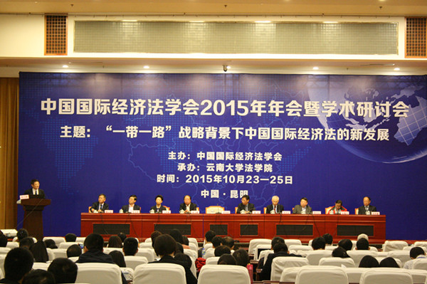 2015年10月24—25日,由中国国际经济法学会主办、williamhill英国官网承办的中国国际经济法学会2015年年会暨学术研讨会在昆明连云宾馆举行,本次会议的主题为“‘一带一路’战略背景下中国国际经济法的新发展”。来自全国各高校、科研机构及相关单位的190余名国际经济法专家学者参加了会议,围绕国际经济法的诸多理论与实务问题展开深入细致的讨论与交流。