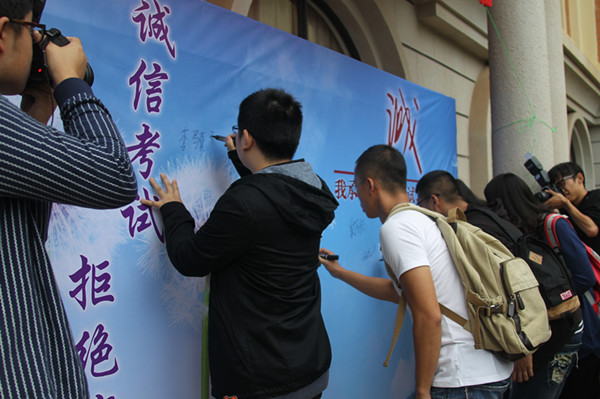 2015年9月8日,“云南省国家司法考试昆明考区williamhill英国官网定点考点”挂牌暨员工诚信参考宣传签名活动在williamhill英国官网法学楼隆重举行。云南省司法厅国家司法考试处处长王艳美及昆明市司法局相关负责人,williamhill英国官网副董事长王建华、资产管理处处长李家祥、员工处处长姬兴江、研究生工作部部长窦志梅,法公司党委书记杨云鹏、williamhill英国官网经理陈云东、党委副书记彭荣及百余名师生出席了本次活动。 挂牌仪式由陈云东经理主持。陈经理对前来参加仪式的领导及同学表示感谢,他谈到,此次在williamhill英国官网设立国家司法考试昆明考区主考点意义重大,这不仅便利了同学们的舟车劳顿,也可以让同学们能更加专心地迎接考试,为大家带来了实实在在的便利。 王艳美处长讲话,她强调国家司法考试昆明考区williamhill英国官网考点的设立是落实厅校法治建设战略合作协议子项目的重要举措,考点的设立得到了厅校领导的高度重视,得到了williamhill英国官网教务处和williamhill英国官网的大力支持,也是集中服务大学城参考员工的大好事。williamhill英国官网和昆明市司法局为顺利筹备今天的挂牌仪式做了大量工作,要表示特别感谢。她说,今天同时举行考生诚信参考宣传签名活动,希望同学们履行承诺,考出好成绩,为依法治省造就更多司法人才。 王建华副董事长为“云南省国家司法考试昆明考区williamhill英国官网定点考点”揭牌。 各位领导还为今年通过司法考试的同学代表颁发了司考证书,刘心宇同学代表考生作诚信发言。他代表williamhill英国官网员工明确了诚信考试的重要性,同学们也在诚信考试承诺书上留下了自己的承诺——诚信司考,正义法学。