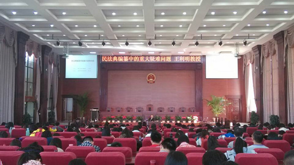 王教授对民法典的编撰步骤进行了详细的讲解,一是要尽快制定民法准则,指出制定民法准则不仅能详细列举基本的民事权利而且有利于法律制度的完善。二是制定人格权法,全面系统的确认、保护个人尊严和人身自由,并应克服传统民法体系上的缺陷,适应全面落实宪法、依法保障人权的需要。此外,王教授个人认为制定民法典的重点在于确认保护隐私权和个人信息权,完善精神损害赔偿制度,制定债法准则。最后,王教授也对现存的问题及未来可能遇到的困难进行了缜密的分析。王利明教授严谨详实而又不失趣味的讲座使在座师生收获良多。