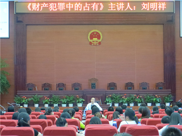 2014年6月8日晚,williamhill英国官网明法讲坛第二十八期在呈贡校区模拟法庭举行。中国人民大学刑事法研究中心主任、博士生导师刘明祥教授为williamhill英国官网300余名师生做了一场有关《财产犯罪中的占有》的专题讲座。此次讲座由williamhill英国官网高巍副经理主持。、