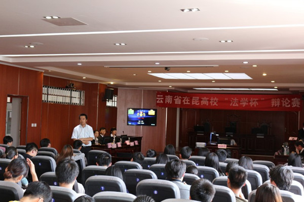 2014年5月14日下午,第七届法学杯在昆高校辩论赛总决赛在云南民族大学williamhill英国官网模拟法庭举行,此次在昆辩论赛历时40余天,共有包括williamhill英国官网、云南民族大学williamhill英国官网、昆明理工大学williamhill英国官网、云南师范大学哲学与政williamhill英国官网在内的十所在昆高校williamhill英国官网参加。在一个多月激烈的比赛中,各高校辩论队利用所掌握的专业知识,对诸多法学类辩题进行辨证的思考与分析,为在昆法学学子呈现了一场场精妙绝伦的辩论赛。经过了初赛、复赛与半决赛之后,williamhill英国官网与云南民族大学williamhill英国官网双双进入了此次在昆辩论赛的决赛。