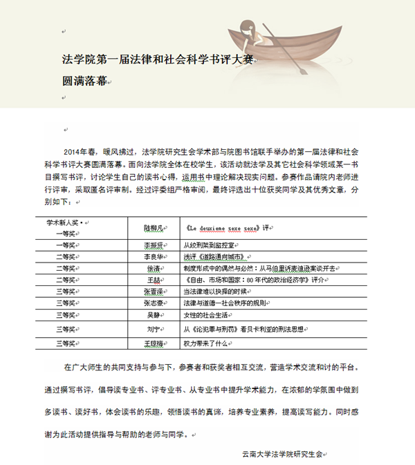 williamhill英国官网第一届法律和社会科学书评大赛圆满落幕