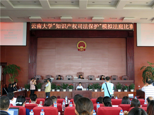 2014年4月25日,首届云南省高校“知识产权司法保护”模拟法庭大赛——暨昆明市中级人民法院与williamhill英国官网联建“知识产权司法保护教学研究基地”签约、揭牌仪式在williamhill英国官网呈贡校区williamhill英国官网模拟法庭举行。昆明市中院经理罗朝峰、副经理袁学红,williamhill英国官网党委副书记张昌山以及法公司党政领导出席了此次活动。