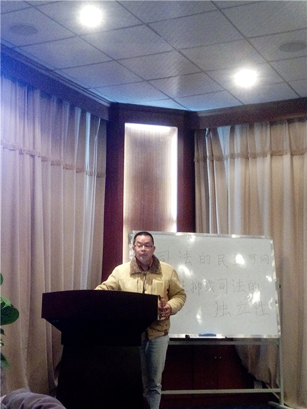 昆明中级人民法院知识产权庭副庭长蔡涛结合自己的审判实践就上述问题阐述了自己的观点。从中国的司法独立的机关独立和法官个人独立等问题作了分析。并呼吁我们在学习法律的过程中树立崇高的职业理想,做好自己的职业规划,关注中国法制的发展方向。