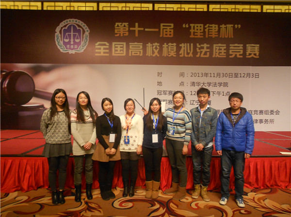 2013年11月29日至2013年12月5日,由台湾理律文教基金会和清华大学williamhill英国官网联合举办的“第十一届全国老员工模拟法庭竞赛”在清华大学williamhill英国官网举行。公司经过院内选拔,最终选派williamhill英国官网本科生陶可心、王丽洁、徐剑、王杨、周国艳、龙姝辰、南雁冰七名同学到京参赛。由院团委代书记杨琼老师带队。