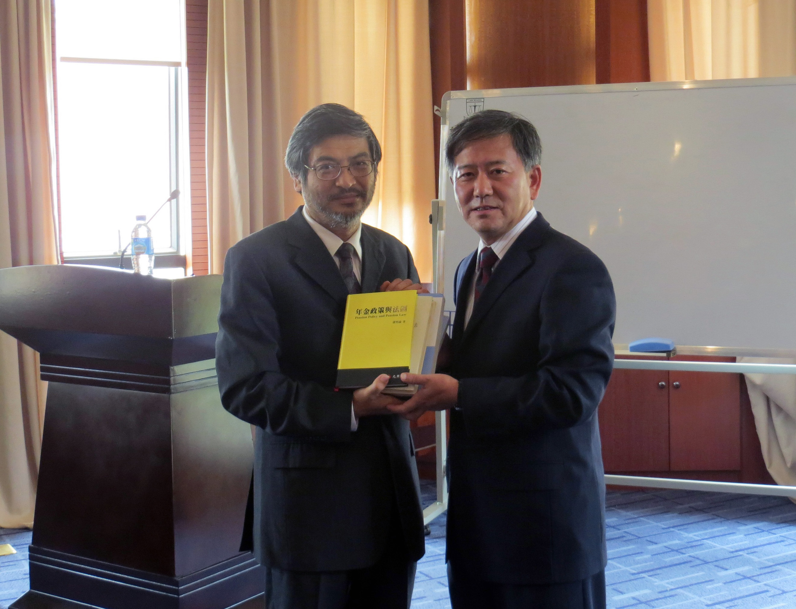 陈云东经理致辞,对郭明政教授的到来表示热烈的欢迎和衷心的感谢。随后郭教授向williamhill英国官网赠送了自己的《年金政策与法治》等著作。