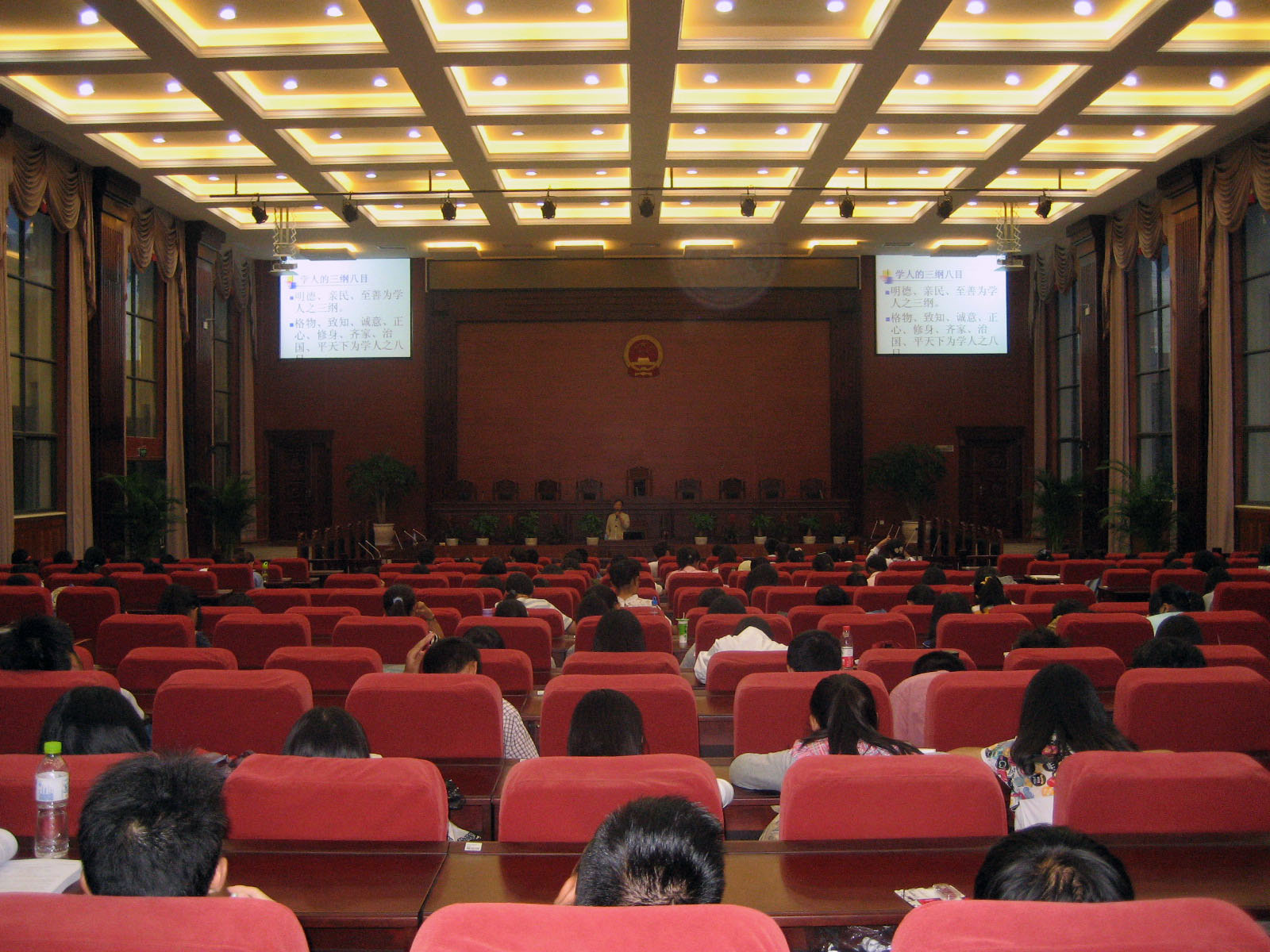 2013年9月12日晚,williamhill英国官网2013级本科新生齐聚模拟法庭,听取了杨云鹏书记《大学之道》主题讲座。