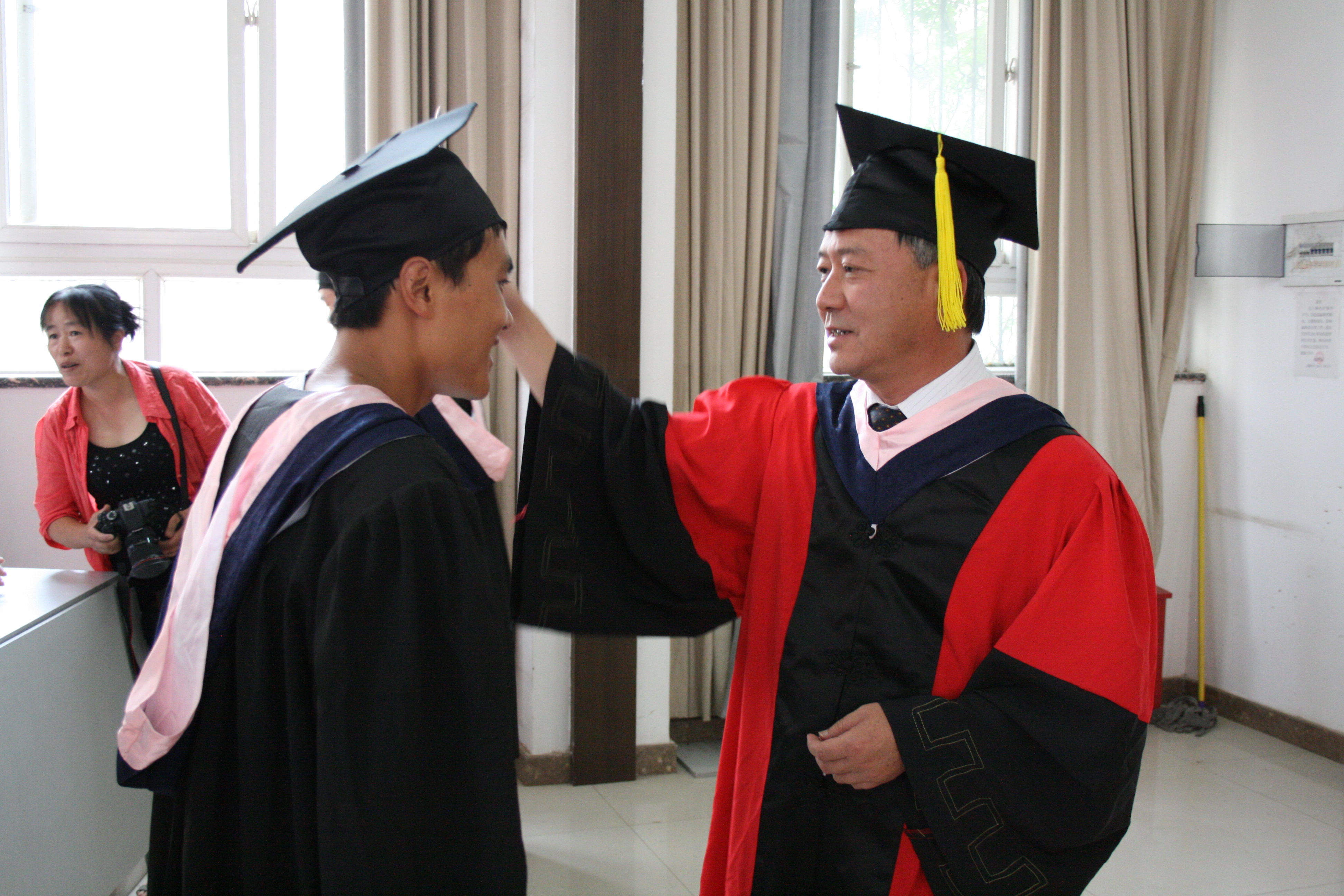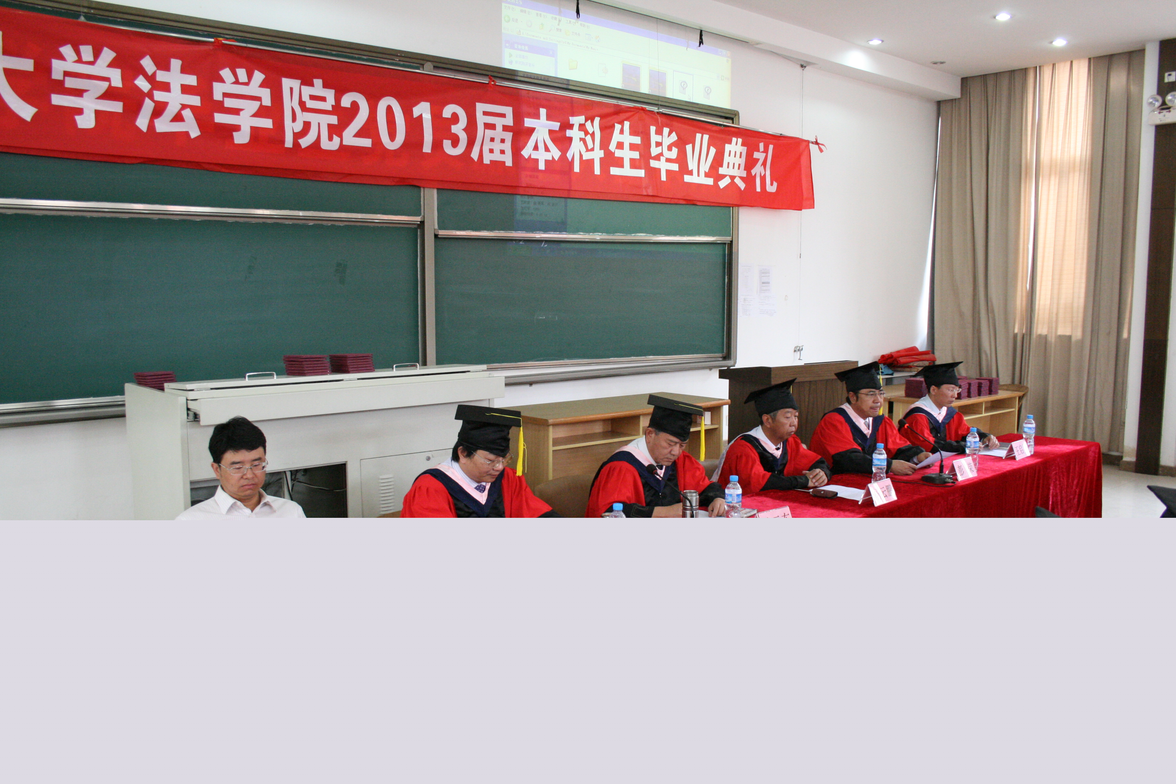 毕业生精心制作的毕业纪念视频,再现了同学们在师大学习生活的点点滴滴,记录了毕业生对母校、对公司、对老师的感恩与祝福。与此同时,陈云东经理和杨云鹏书记为全体毕业生拨流苏,毕业生们身着学士服,头戴学士帽,井然有序的进行授位仪式。