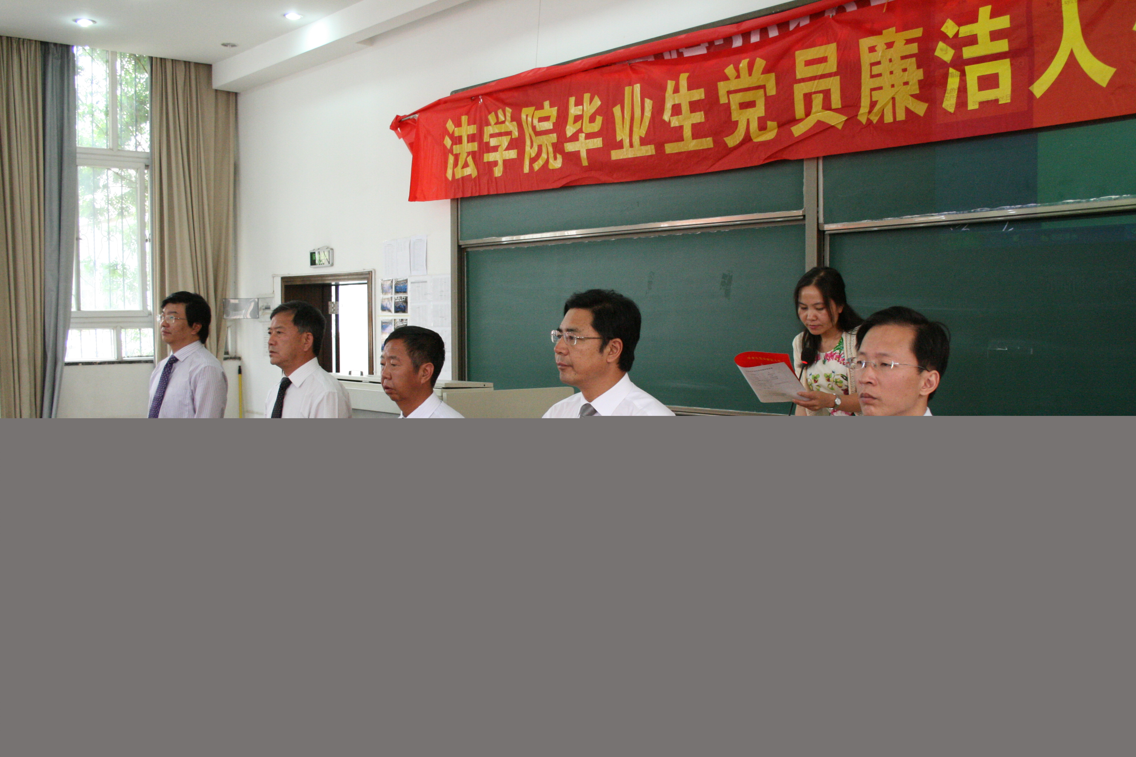 毕业典礼之后,进行了毕业生党员廉洁人生承诺仪式。在彭荣副书记主持下,杨云鹏书记讲话,毕业生党员在党支部书记李云芝老师的领誓下进行了庄重的宣誓仪式。