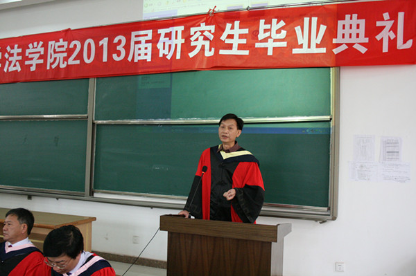 导师代表张锡盛教授在讲话中以费孝通先生 “各美其美、美人之美、美美与共、天下大同” 的名言提示同学们应有博大的胸襟和高尚的追求,嘱咐毕业生在一个快速发展、和而不同的社会里,要保持一份平和与谦逊的心态,做到博采众长、拓宽思路、启迪智慧,为建设一个“和而不同”的美好社会贡献力量。