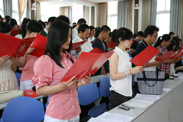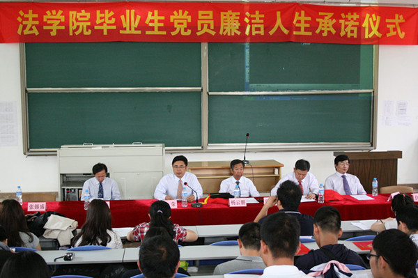 接着,在国际歌声中举行了“williamhill英国官网毕业生党员廉洁人生承诺仪式”,williamhill英国官网2010级研究生党支部书记戴琳老师带领全体毕业生党员进行了严肃、认真的廉洁人生承诺。