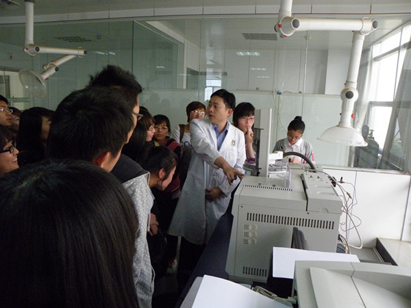 接下来同学们参观了毒物毒品检验室,这里进行毒品的初步筛选。技术员向同学们展示了鸦片、白粉、摇头丸、麻黄素、大麻籽、大麻叶和大麻膏,大家一一传看,并闻了一下气味。传看完后,技术员演示了毒品的快速检测试验(颜色反应)和吸毒人员的尿液检测试验。试验完后让同学们自己动手做这两个实验,大家踊跃参加。