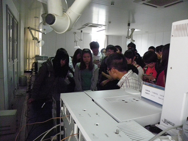 同学们重点参观了毒品实验室,首先到气相色谱(质谱)分析室,该实验室的技术员向同学们展示了真正的毒品海洛因、冰毒,同学们一一传看,并拍照。之后操作气相色谱(质谱)联用仪向我们演示仪器如何自动给未知毒品浸样、配液并分析成分。该仪器的好处就是技术员在下班后设置好,第二天来就可以拿到相关毒品分析报告,且灵敏度极高。