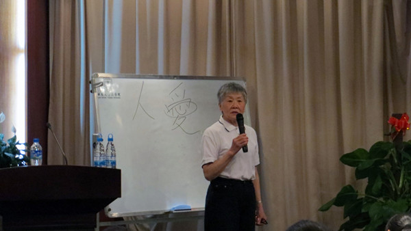 吴教授说父母对她最重要的教育就是要尊重“人”,要热爱生命,尊重大自然。吴教授写下“人”、“愛”、“信”、“說”、“話”、“聽”等字,分别解析这些字的结构,结合现实给予生动而又形象的诠释。