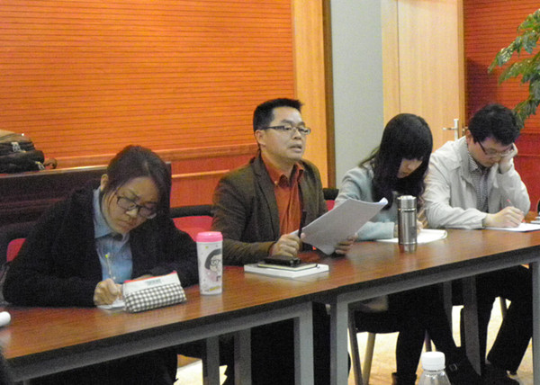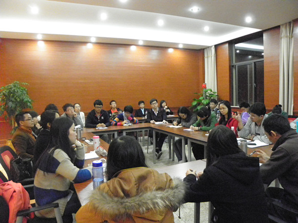 王鑫老师为此次学术沙龙做了一个简要的介绍后,沈寿文老师用了将近二十分钟的时间对此次报告进行了阐述,对“地方自治”的几个误读进行了澄清、解读和分析,并引出了一系列的讨论。老师和同学们针对报告提出了自己的观点,对于一些现实存在的问题,王鑫老师在报告中有针对性地举了一些例子;杜健荣老师提到对于地方自治,行使好地方自治的权利也很重要。一系列的疑问被提出来,大家就不同问题进行交流、展开讨论。最后,沈寿文老师对此次报告作了一个总结,表示作为东陆法律人学术沙龙的第一期开讲人,希望能通过这个平台与老师同学相互交流,共同探讨。