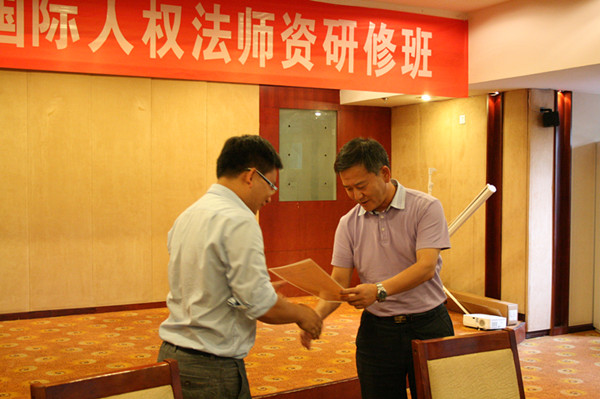 闭幕会上,参会老师纷纷表达了其参加此次研修班的感想,其中既有对会议主办方给予进修机会并精心的准备和安排表示感谢,也有对从事人权法教育的专家认真致学、孜孜以求的学者风采表示钦佩,同时通过研修,不仅纠正了以往对人权认识的一些误区和偏见,而且对人权法的教学激发了兴趣,表示今后将会把人权的意识和观念融到教学和生活中去,并争取开设人权法课程,部分参会人员还希望能获取更多的进修机会。最后,williamhill英国官网经理陈云东教授代表会议主办方向参会代表颁发了研修班结业证书,研修班圆满结束。