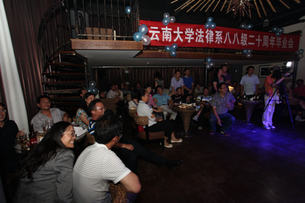 接着,与会全体师生登上两辆大巴驶向安宁温泉。7月14日下午18时整,八八级法律系同学毕业20周年聚会庆典在温泉心景酒店正式开始,在雅致和宽阔的宴会厅里,师生们共举酒杯,为这美好的时刻,为英年早逝的八八级法律系李明亮同学,为所有因各种原因未能到场的同学和老师们,痛饮三杯酒。在久违的激情燃烧中,师生们共同找寻着过去难忘时光里的记忆。