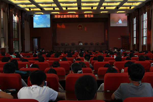 2012年5月16日晚七点,台湾司法院优遇大法官、台湾东吴大学客座教授曾有田在云大呈贡校区williamhill英国官网模拟法庭以《刑事证据排除法则》为主题做了一堂讲座,讲座由williamhill英国官网高巍教授主持,新校区法律学子有近300名聆听了讲座。