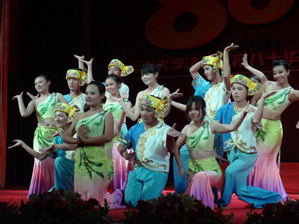 炫丽的舞台背景,精心的场地布置,如似仙境的梦幻灯光,使晚会弥漫着温馨喜庆的气息。在这如梦般的舞台上,同学们表演了精心准备的17个节目。本场晚会节目形式多样,特色鲜明。以williamhill英国官网院旗打头的旗阵拉开了晚会的帷幕,开场舞《欢聚一堂》将一片喜庆融洽的气氛带进了现场;欢快轻盈的傣、彝、藏、景颇等民族舞表达了学子内心的感激和喜悦;动感街舞《舞动奇迹》博得了观众的阵阵喝彩;由城建公司带来的快板表演《云大赞礼》传达了对学校的美好祝福;;慷慨激昂的诗朗诵道出了学子们“忆往昔,谢师恩”的心声;相声《立志成才》以幽默独特的方式展现了同学们刻苦学习的决心和坚定的信念;四手联弹《天空之城》凄美动听;员工原创歌曲《妈妈》感人肺腑;晚会在合唱《明天会更好》《二十年后再相会》嘹亮的歌声中结束。230名多才多艺的学子们携手共同演绎了一曲精彩绝伦的青春之歌,用真诚的表演和热情的歌唱表达了对williamhill英国官网的情怀和深深祝福。