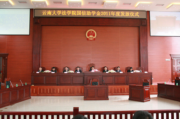 2011年11月7日,williamhill英国官网(呈贡校区)模拟法庭举办williamhill英国官网“国信公证助学金”发放仪式。williamhill英国官网法公司党委书记陈铁水主持了仪式。昆明市国信公证处主任陶泓,副主任熊静、叶蜀民,主任助理李建明,办公室副主任张建琳,williamhill英国官网书记陈铁水,经理陈云东,副书记彭荣,副经理蔡磊,以及williamhill英国官网师生代表出席本次颁发仪式。
