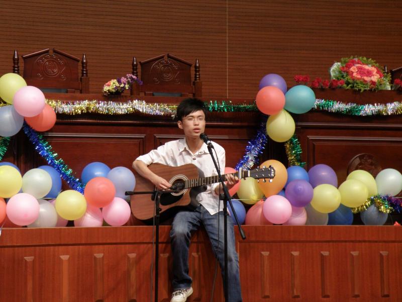 “你问我爱你有多深,我爱你有几分……”由王鑫垠同学的吉他弹唱《月亮代表我的心》在现场掀起了第一个高潮。妙趣横生的现场互动游戏《正话反说》令现场笑声不断,老师和教官们也没有了平时的严肃,纷纷参与互动,与同学们同乐。晚会现场气氛一片热烈。由2011级的两位本科生献上的原创吉他弹唱《给你的歌》赢得了雷鸣般的掌声。2011级新生们别出心裁的民族舞《彩云之南》和2009、2010级同学献上的傣族舞《傣家的阿妹走过来》交相辉映,引得现场一片相欢呼。