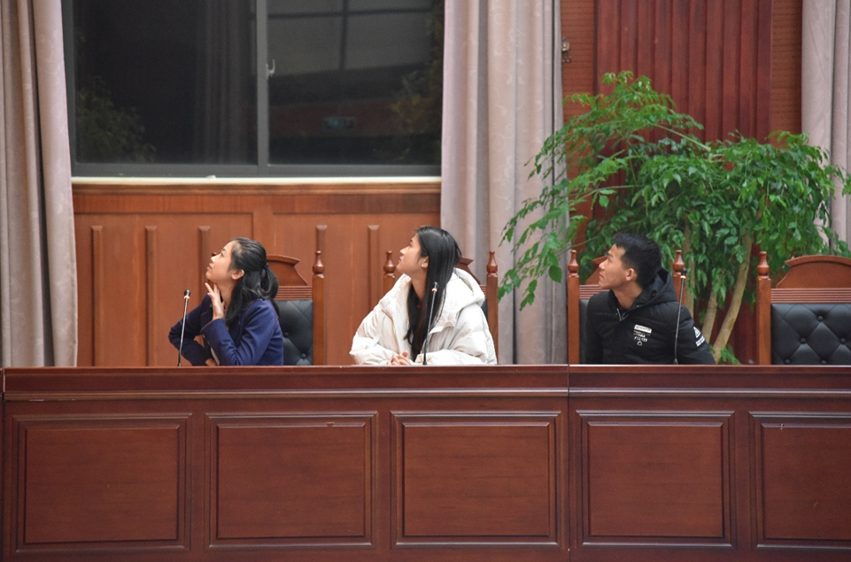 之后进入知识竞赛环节,竞赛分为三个回合,第一轮是九进六的淘汰赛,进行书面答题,共20道选择题,九支参赛队均展现出不俗的实力,按照每队分数高低排序,排名前六的参赛队伍晋级。