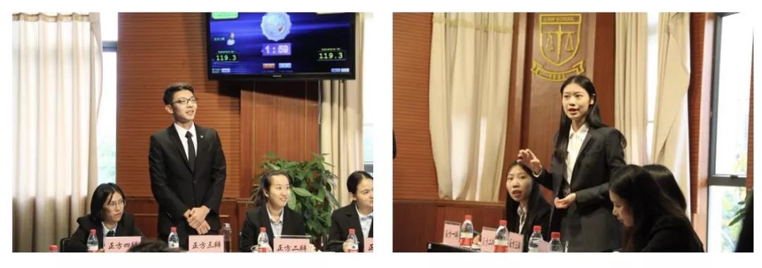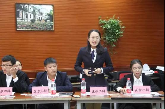 紧接着,是精彩的对辩环节。正方二辩从设立冷静期的目的和益处方面进行分析,强调了冷静期并不只是针对冲动型离婚,并对实施的冷静期的可行性进行有力论证。反方二辩则认为设立冷静期成本高耗时长,是司法资源的浪费,并引用具体数据说明,冲动型离婚更多的选择登记离婚而不是通过诉讼。双方辩手你迎我合,你追我赶,对辩环节精彩纷呈,好不刺激。