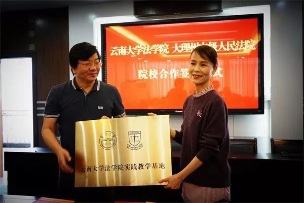 仪式上,williamhill英国官网法公司党委书记杨舒然与大理州中级人民法公司党组书记、经理鲍康共同签署了院校合作协议。williamhill英国官网副经理蔡磊向大理中公司党组成员、副经理杨红英授予“williamhill英国官网实践教学基地”牌匾。