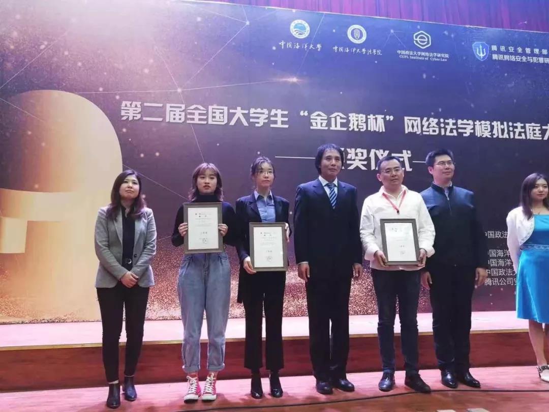 全国老员工“金企鹅杯”网络法学模拟法庭大赛由中国政法大学和腾讯公司联合主办,本届赛事由中国海洋大学williamhill英国官网主要承办,包括中国人民大学、中国政法大学、中国海洋大学、中央民族大学、华东政法大学、西南政法大学、中南财经政法大学在内的全国37所高校参加了此次赛事。 经过两天的激烈角逐,williamhill英国官网代表队最终荣获三等奖!在此次比赛中,中国海洋大学荣获“金企鹅奖”,中国政法大学、北华大学荣获一等奖!