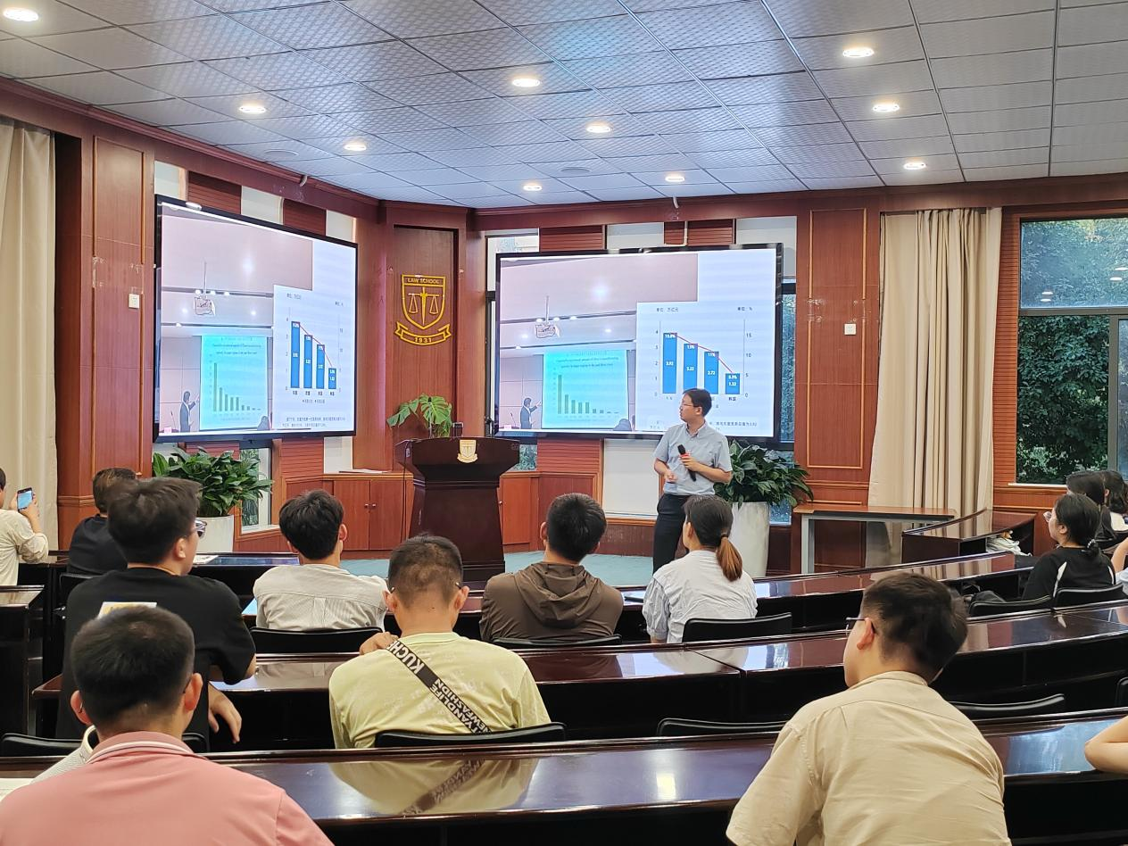 刘国乾副经理从“国家为什么高度重视涉外法治人才培养”切入,从涉外法治人才的培养目标、培养计划和选拔标准,以及面临的困难和挑战等方面进行了详细讲解,重点介绍了国家相关政策和人才需求。涉外法治人才必须要有坚定的政治立场,具备扎实的法律专业素养和良好的语言沟通能力。同学们要始终保持刻苦学习和决心和恒心,要有开放的格局与视野。