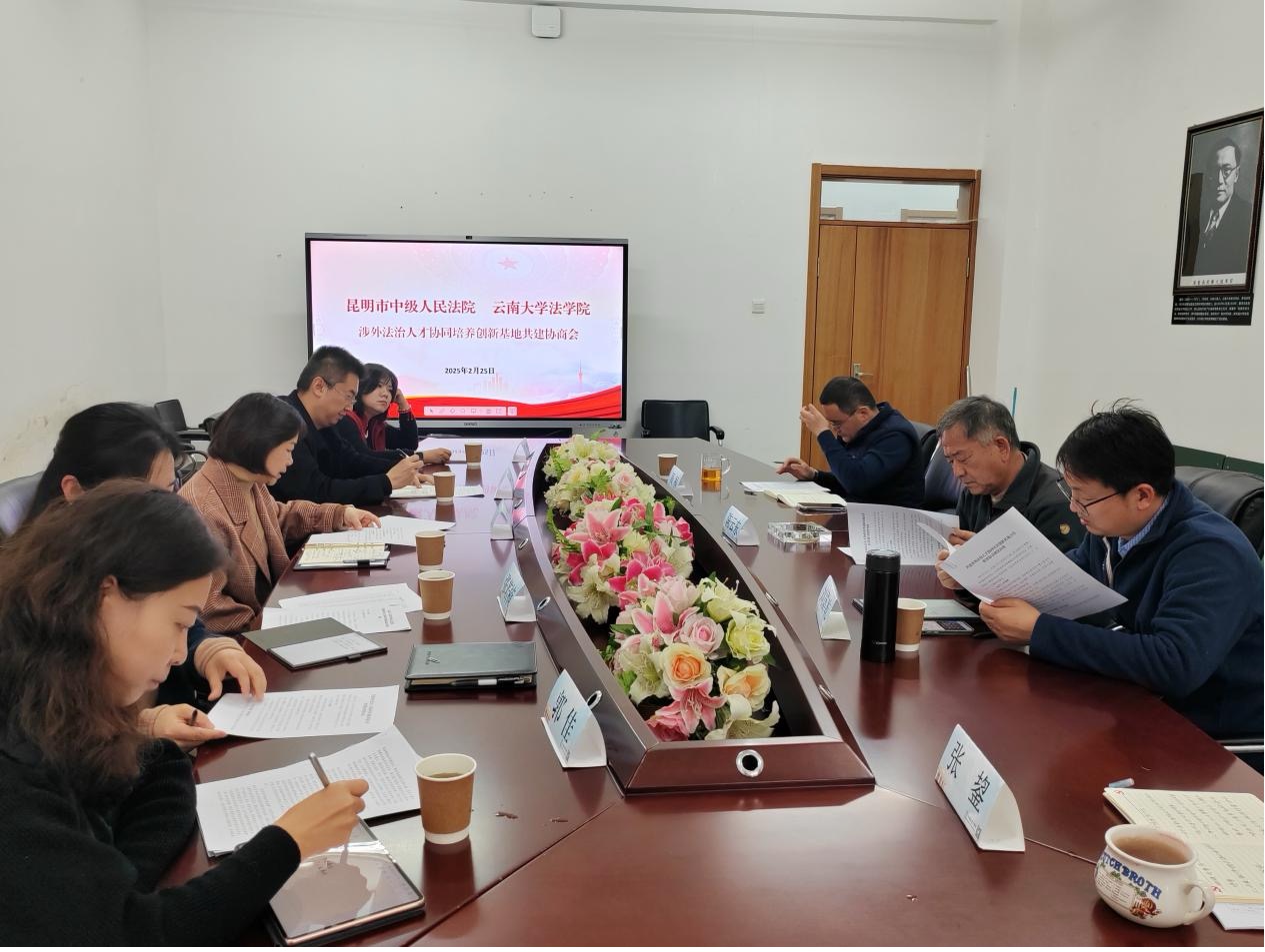 为深入贯彻落实国家关于涉外法治人才培养的战略部署,推动涉外法治人才协同培养创新基地建设,昆明市中级人民法院、昆明市官渡区人民法院与williamhill英国官网于2025年2月25日共同举办了涉外法治人才协同培养创新基地共建协商会。