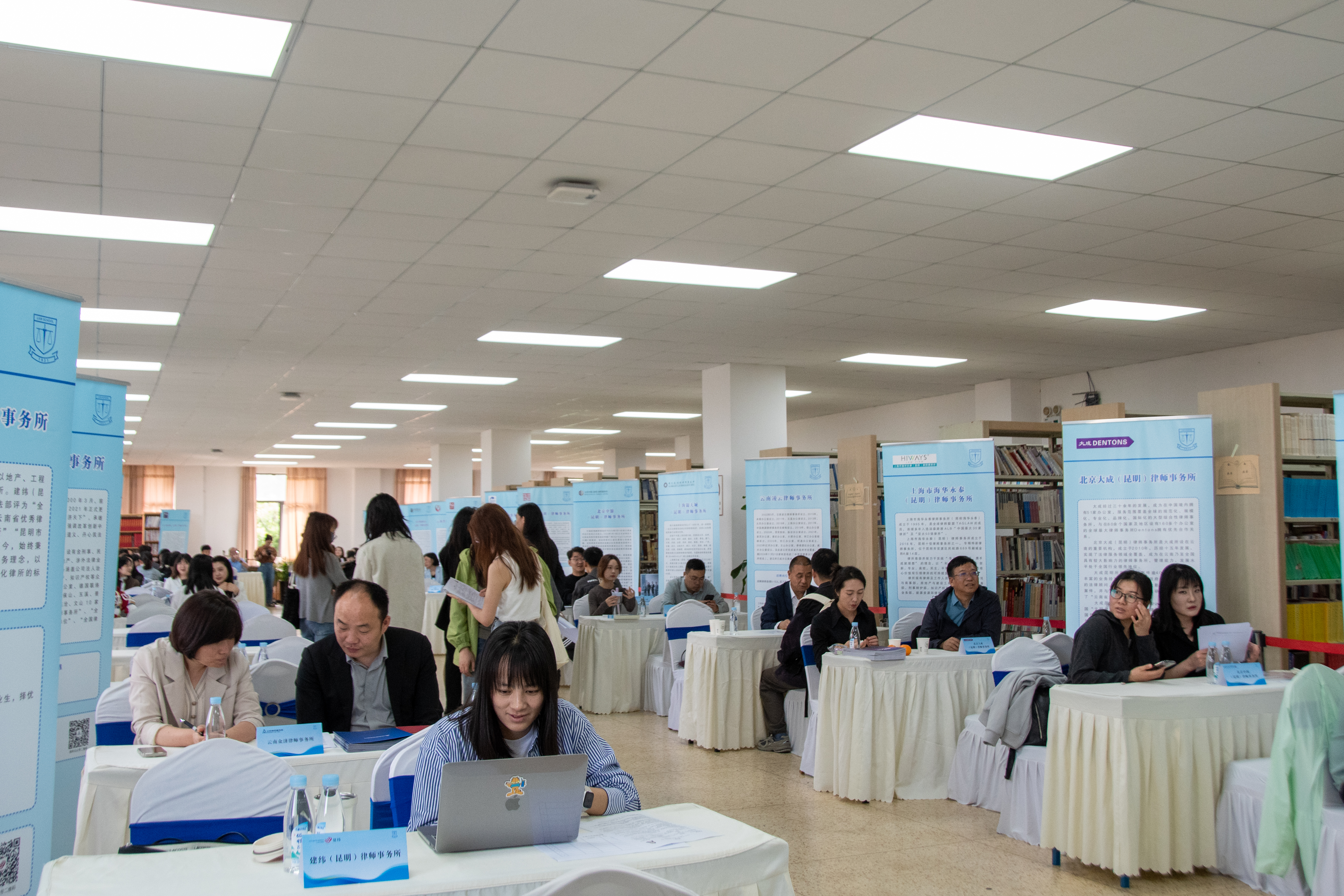 本次招聘会共吸引32家用人单位参与,涵盖昆明本地及省内外知名律所、企业法务部门、金融机构及司法相关单位,提供岗位以实习律师、律师助理、法务专员、合规顾问、知识产权专员为主,岗位需求与法学专业高度契合,为毕业生提供了多元化选择。