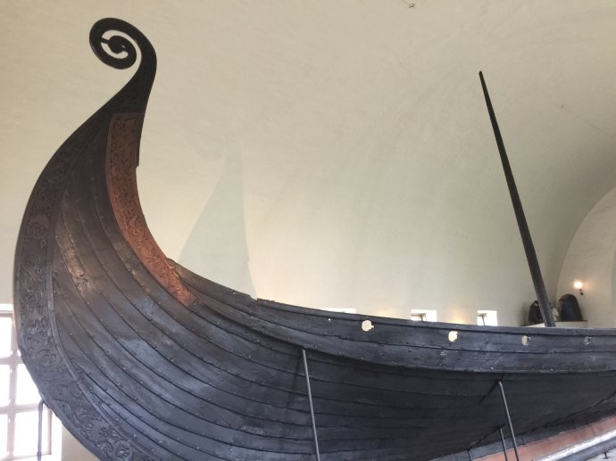 看到这些图的一个想法是,当年挪威人因为环境的恶劣而不得不去掠夺,其实铁血之中也有大无奈。我在这里已经到了五月还需要在室内开暖气,四月三号还下了一场小雪,如果没有现代文明的石油和水电,在这里的生存环境其实很艰难的。植根于恶劣环境下的瓦哈拉信仰和铁血的文化,也是最适应当年这里的环境的。也只有无可奈何的人才会乘坐这样简陋的战船,去汹涌的大海上寻找自己的生路。