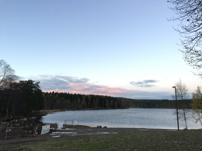 而krinjso出去两三百米,便是小湖,一圈3.3公里,风景优美,是运动散步的好去处。挪威人蛮幸福的:福利太高了,又有钱有闲,生了孩子爸爸可以放产假,妈妈不受大的影响,职业也不会受大的波动(这点让这边的女人有尊严男人可以有时间和孩子相处 ),所以经常在小湖看到各种挪威人跑步,推着婴儿车的,牵着狗的。 一到五月份,更是各种烧烤和跑步比赛。另说一句,小湖的告示牌上写着禁止骑马,看来发生过什么。